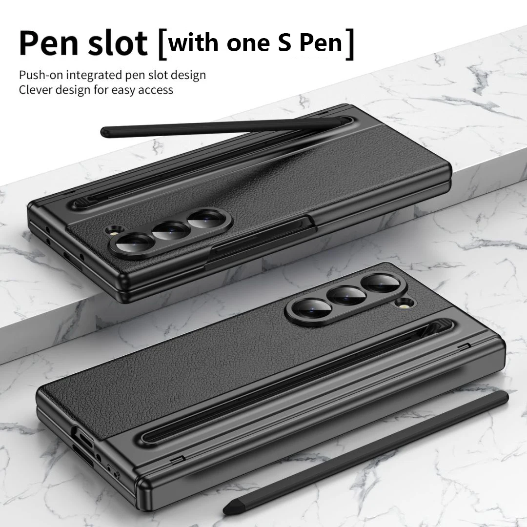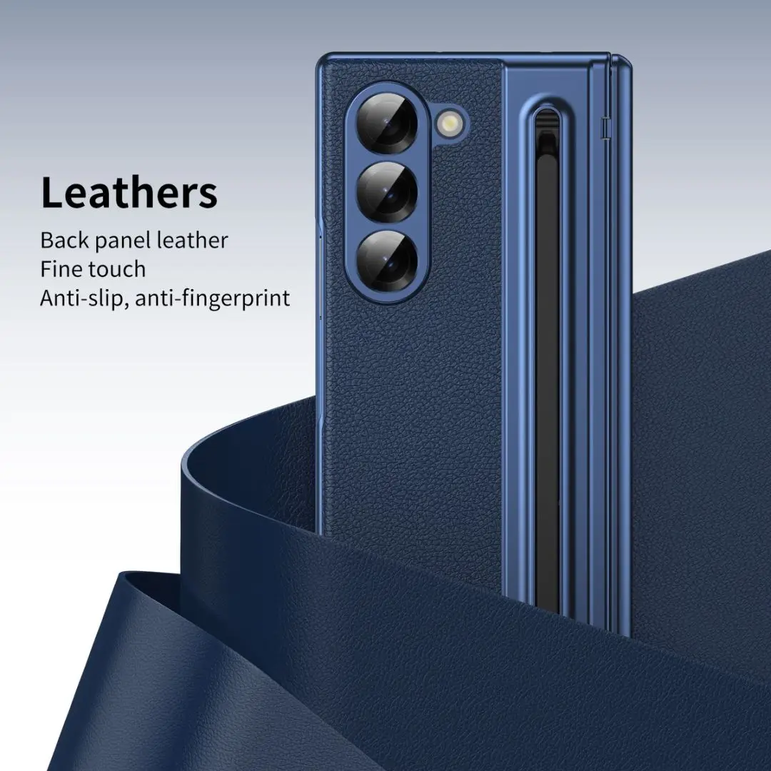 "Leather Phone Case with S Pen for Galaxy Z Fold6 Fold5 Full Body Protection Hinge Protection Phone Cover Black Blue Green for Z Fold4 Fold3"