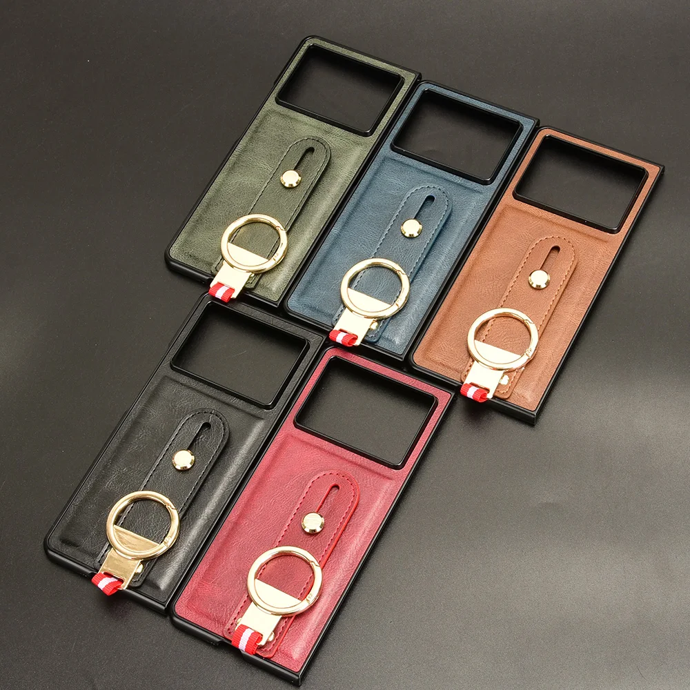 For Tecno Phantom V Fold2 Case Lanyard Luxury Leather Phone Case for Phantom V Fold 2 Wrist Strap Finger Ring Back Cover.